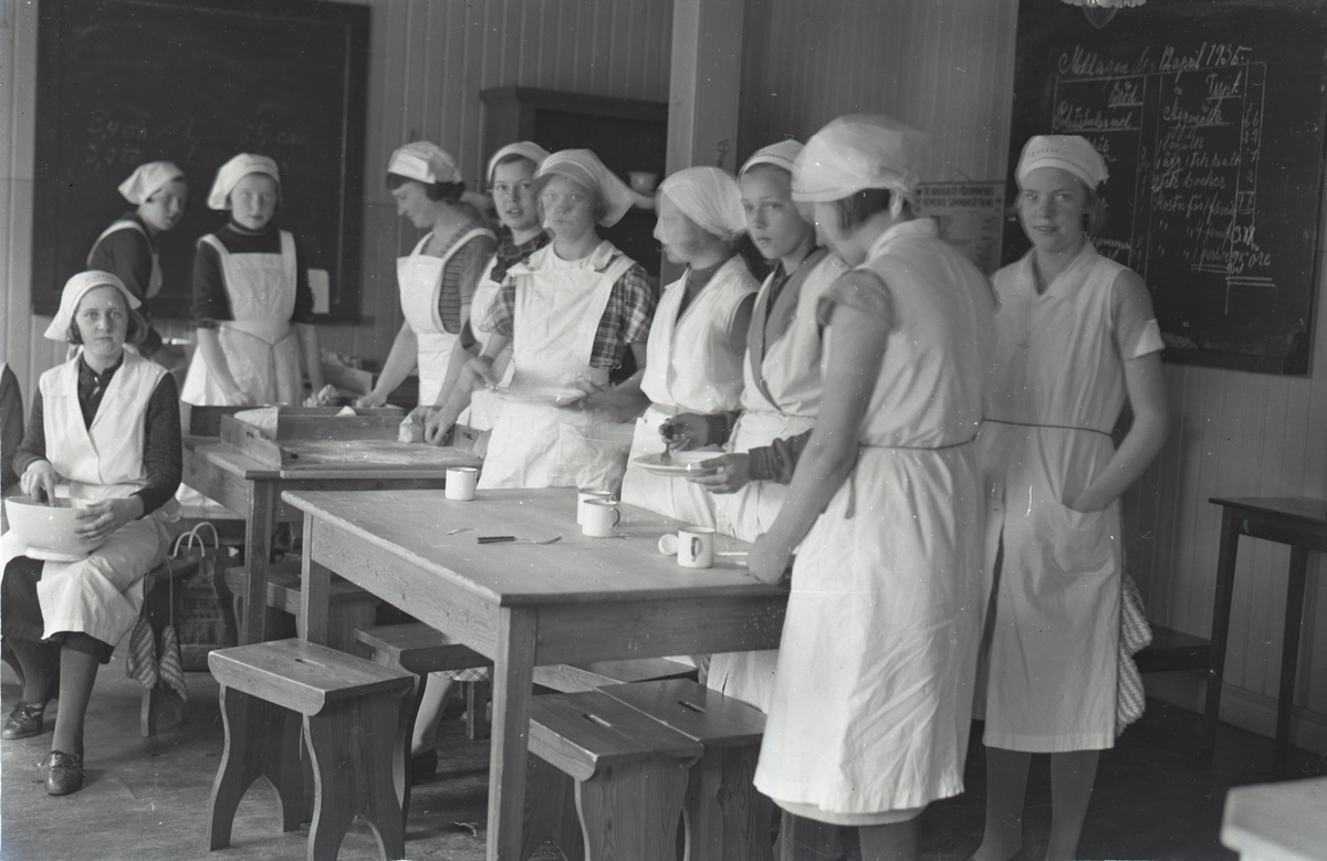 Skolkök, okänt var. Kan vara en av folkhögskolornas.