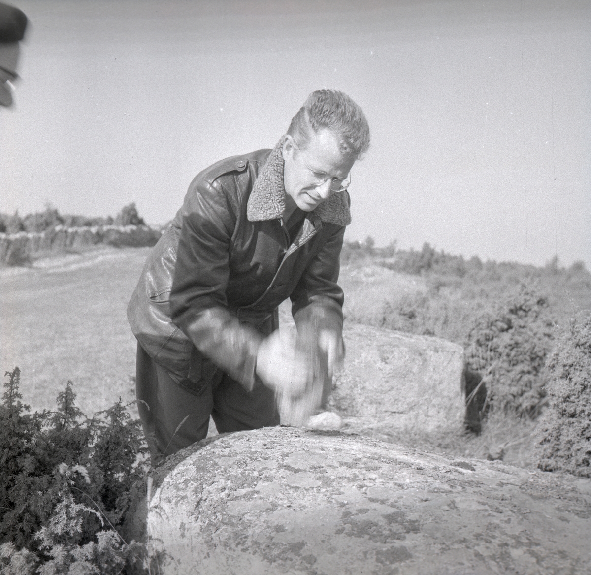 En demonstration i samband med en arkeologisk undersökning vid Nybyåsen 1/10 1958.