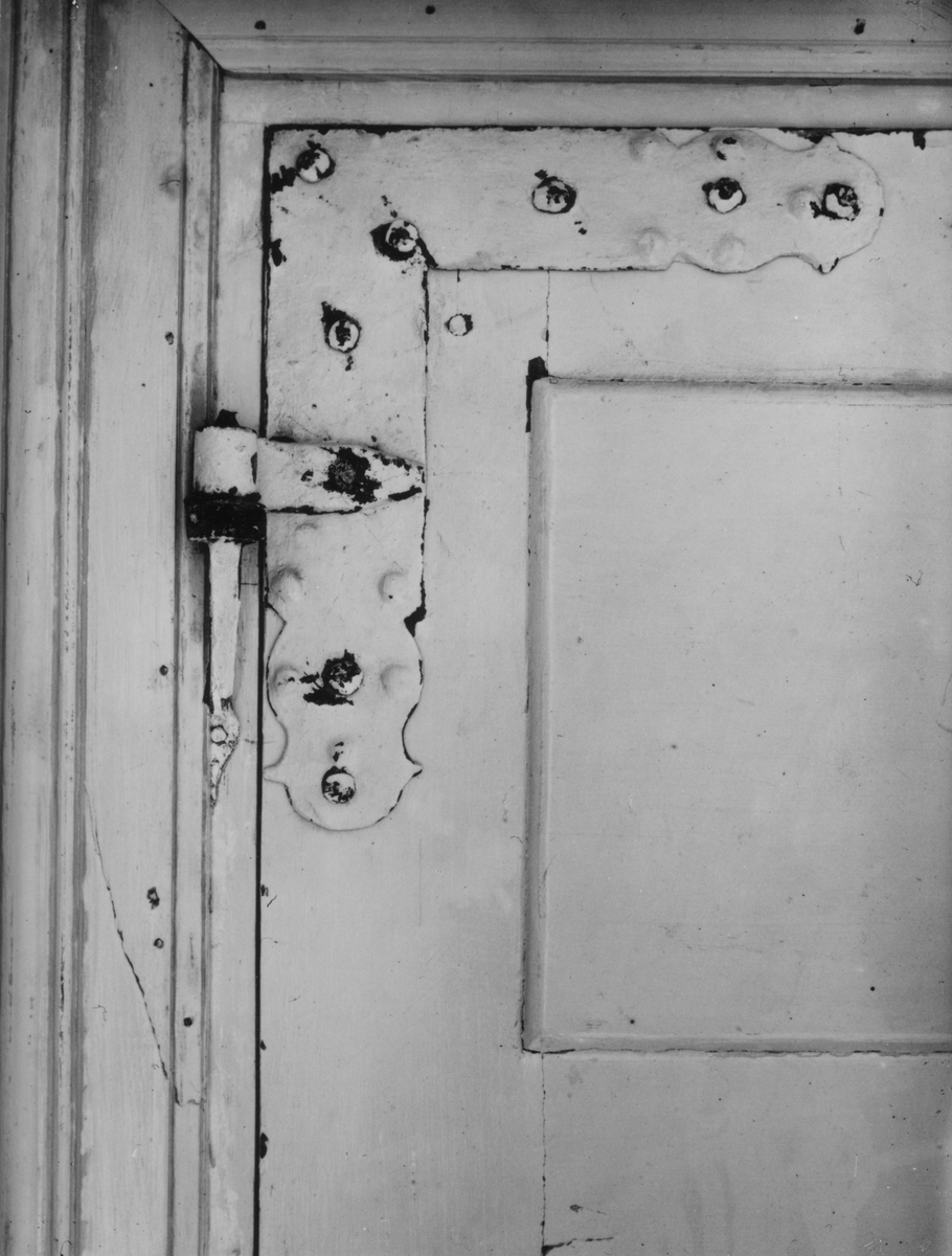 Beslag på trefyllningsdörr i övre våningen på Domprostgården.