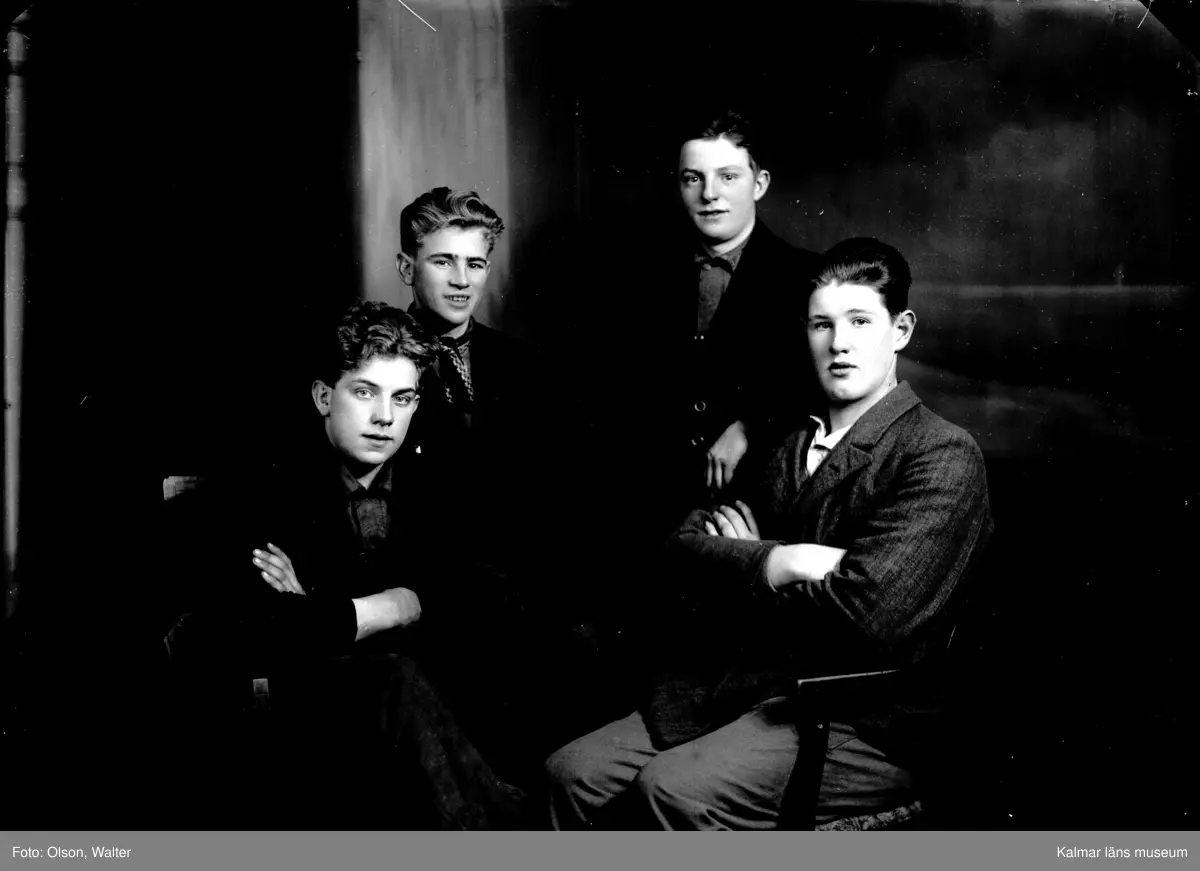 Porträtt av fyra unga pojkar från Kalmar.
