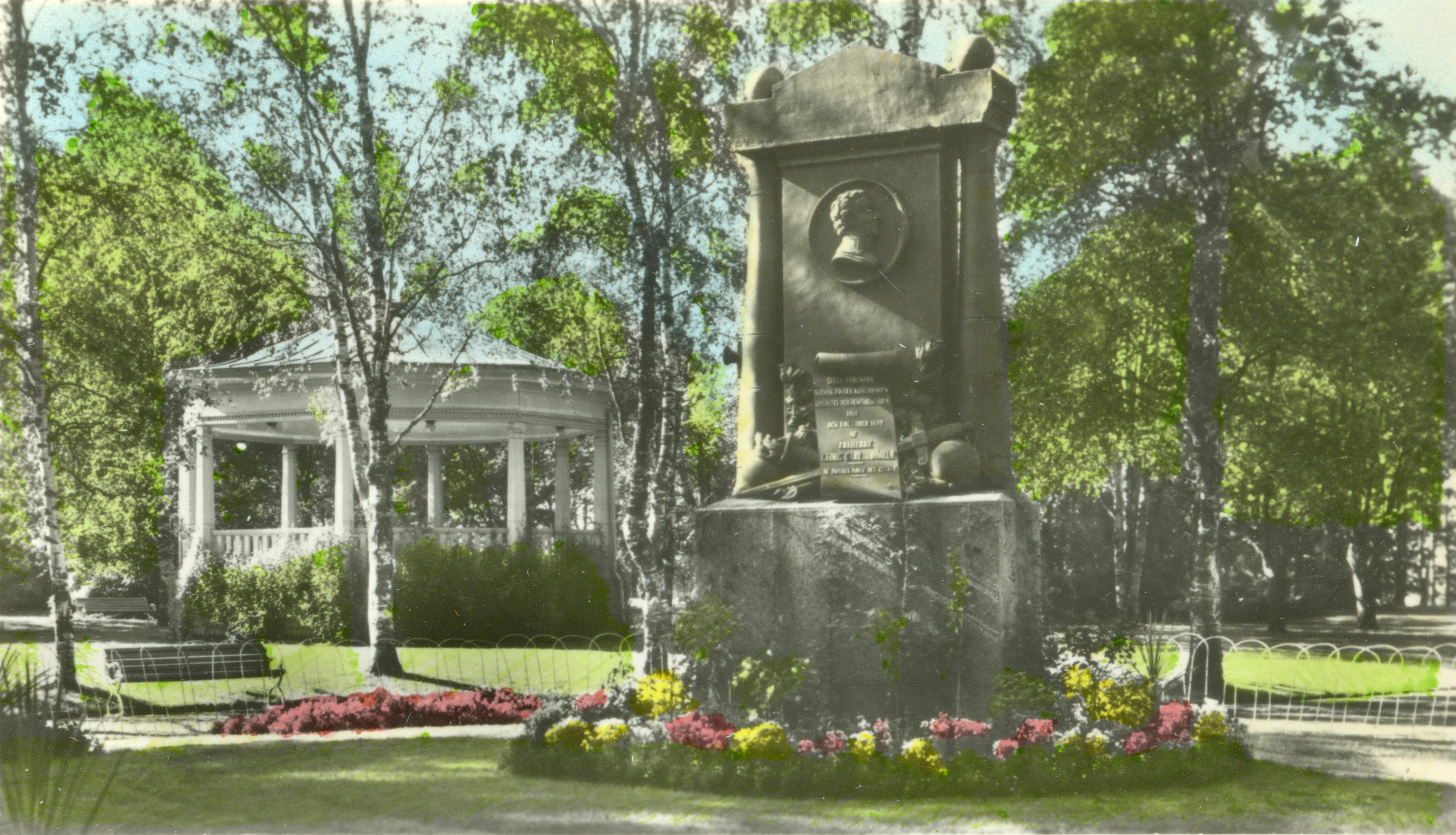 Döbelnsparken och Döbelnsmonumentet. Handkolorerad variant av ac1130.