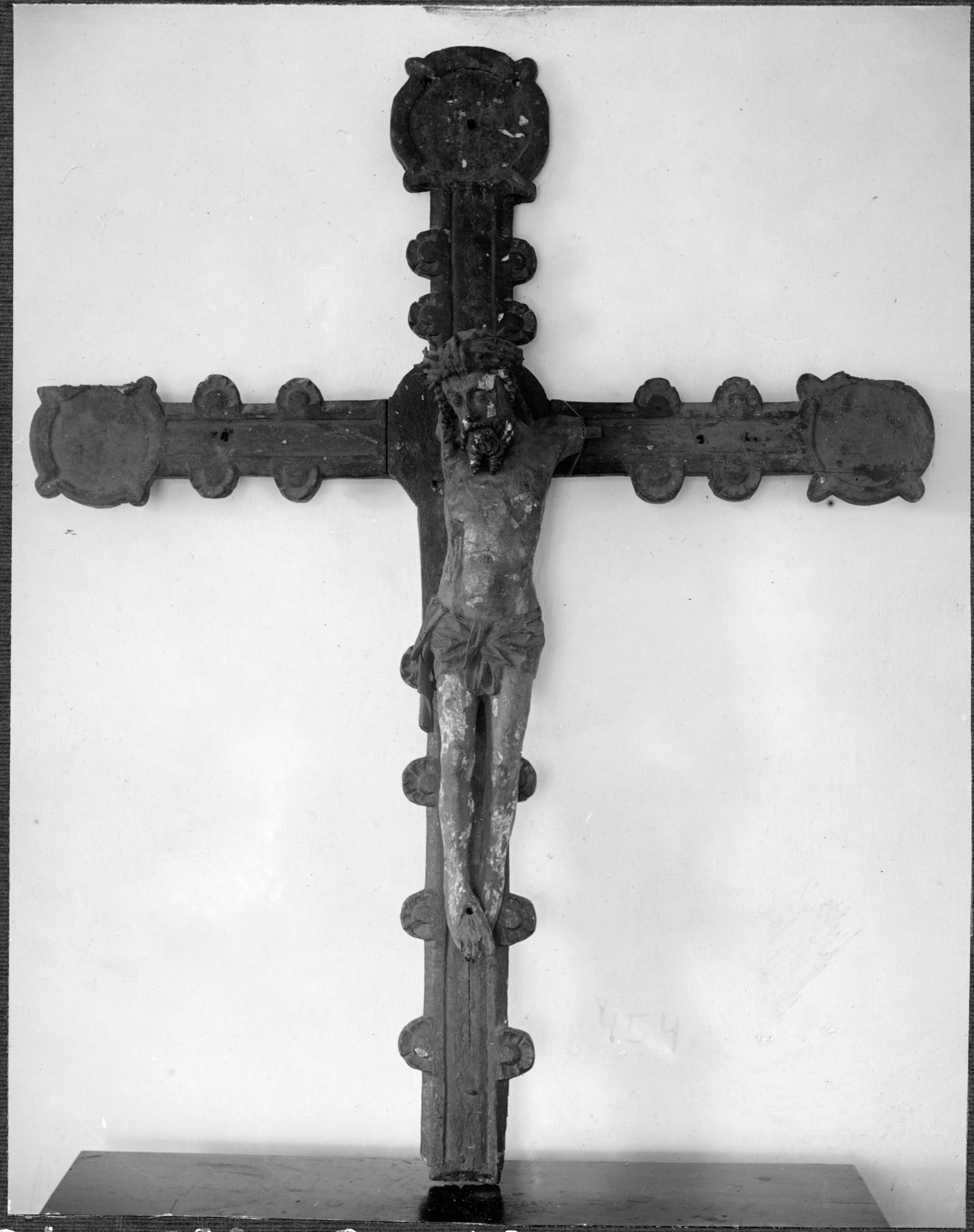 Triumfklrucifix av ek, armar och två fotspikar saknas.