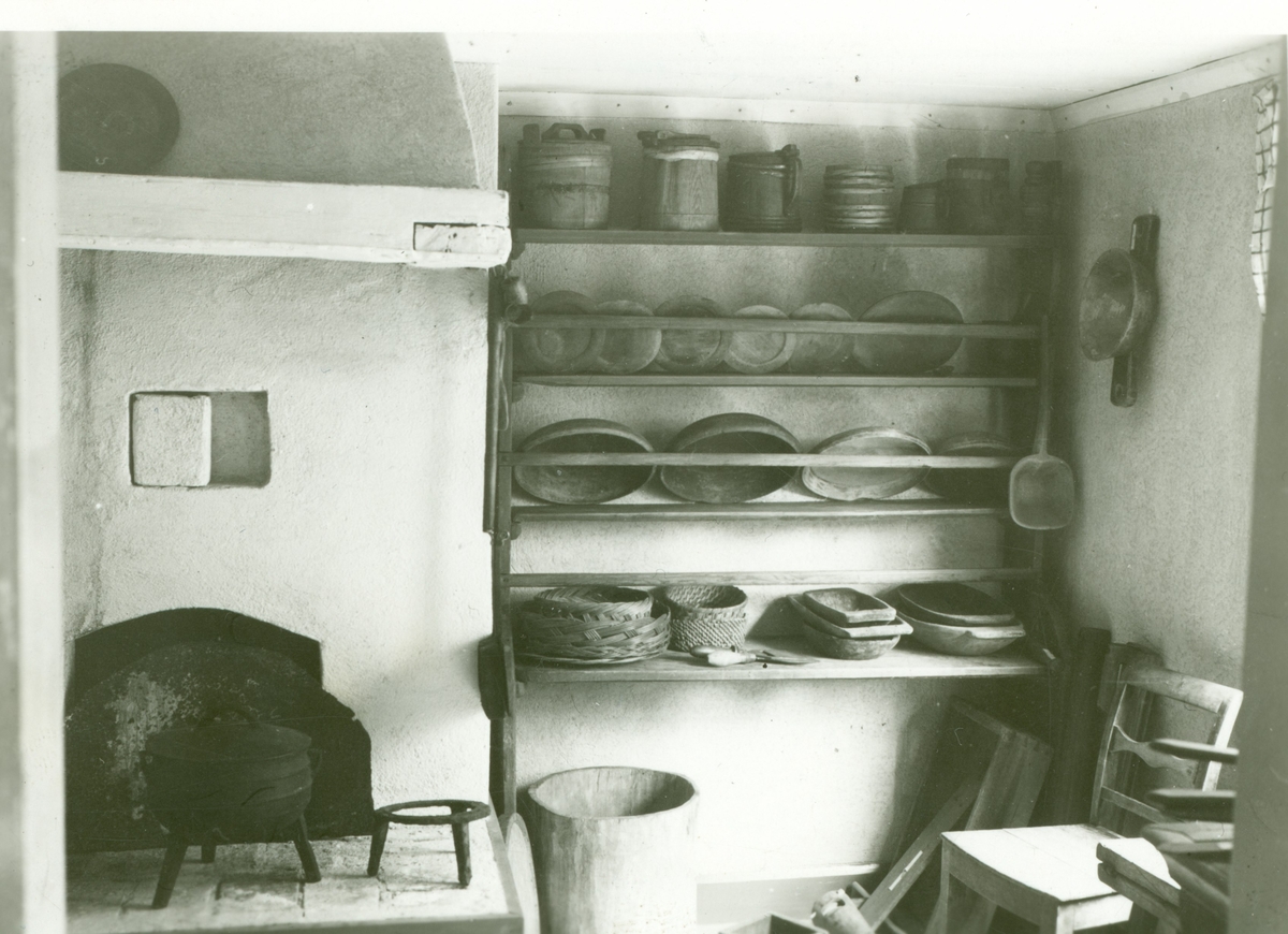 Möjligen interiör från en av stugorna på Hultsfreds hembygdsgård.