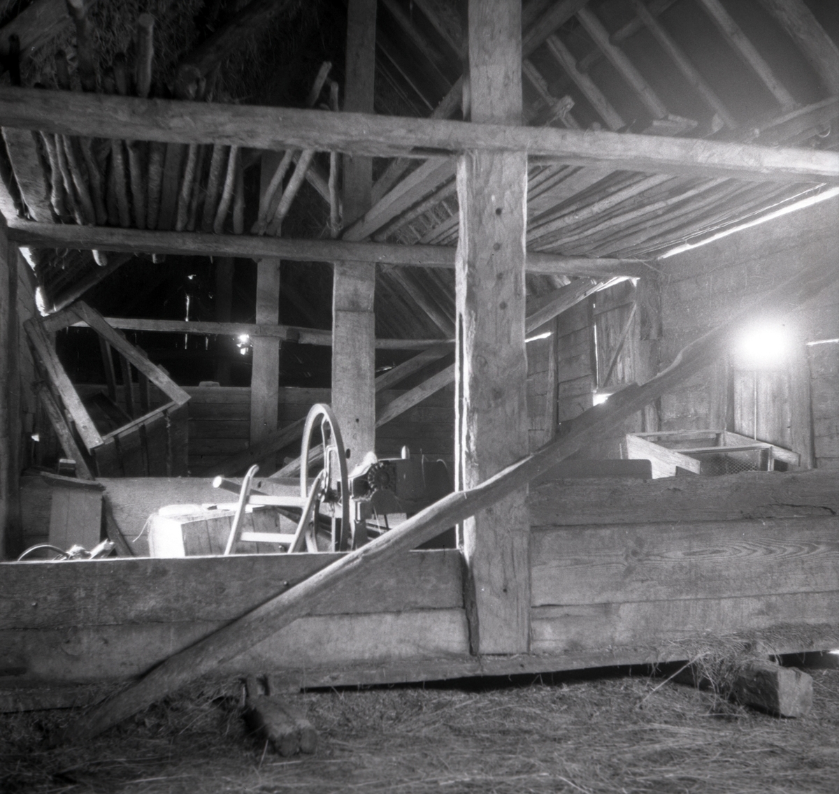 En loge med högsulekonstruktion vid prästgården i Sandby socken.