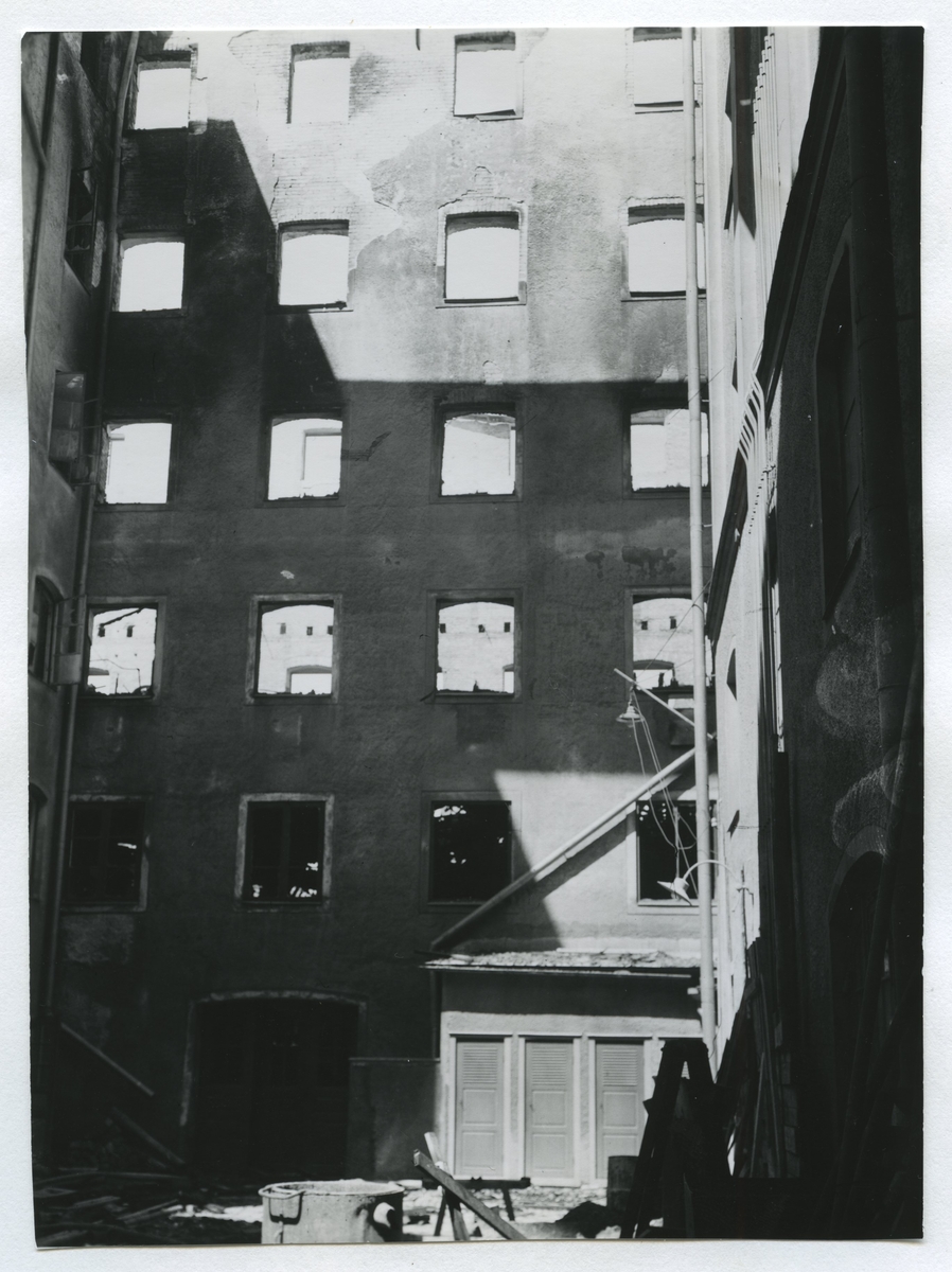 Ångkvarnsbranden i Kalmar lördagen den 6 juli 1935.En utbränd innergård dagen efter branden.
