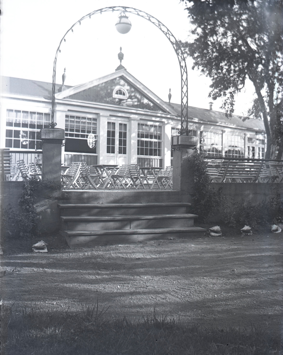 Huvudentrén till Folkets park i Kalmar. Leder till serveringspaviljongen.