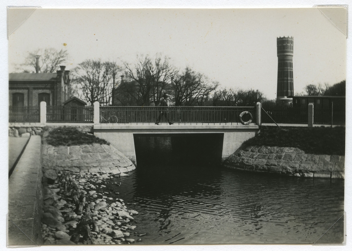Järnvägsbron vid Centralen i Kalmar. I bakgrunden syns vattentornet i Kalmar.