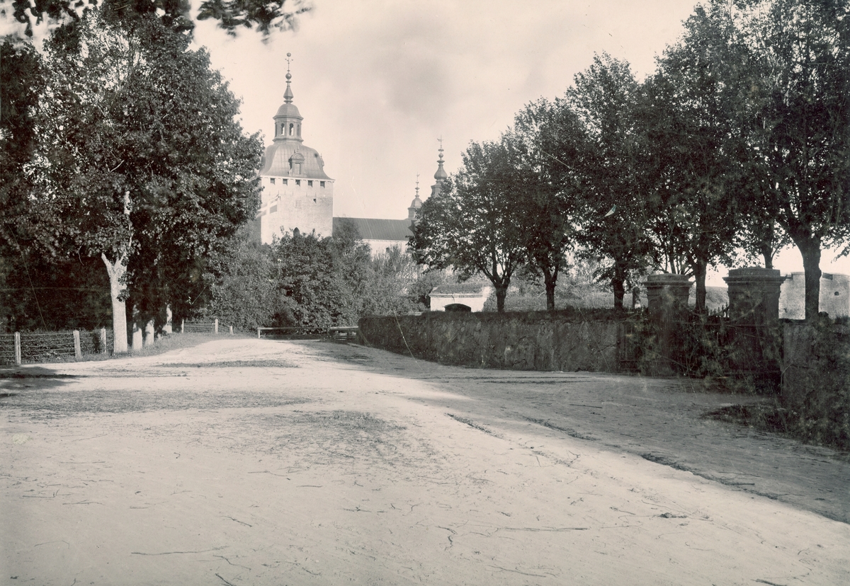 Södra kyrkogården till höger och Kalmar slott i fonden. Eventuellt något statligt evenemang då det verkar vara en tretungad flagga hissad.