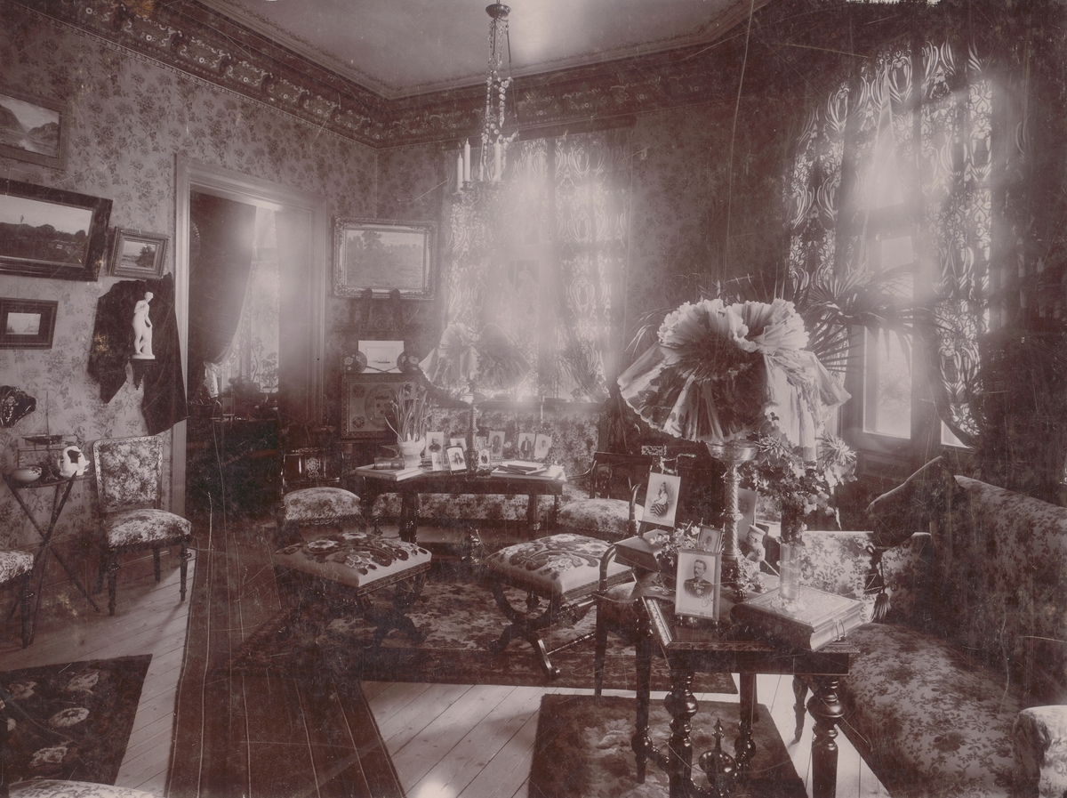 Interiör av tidstypiskt borgarhem från 1800-talets slut.