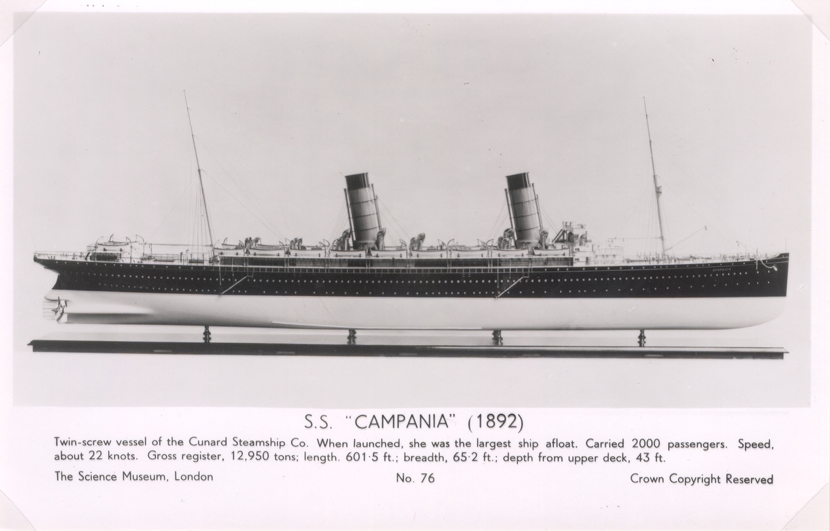 Ångbåten SS Campania som sjösattes 1892. Hon kunde ta 2000 passagerare.