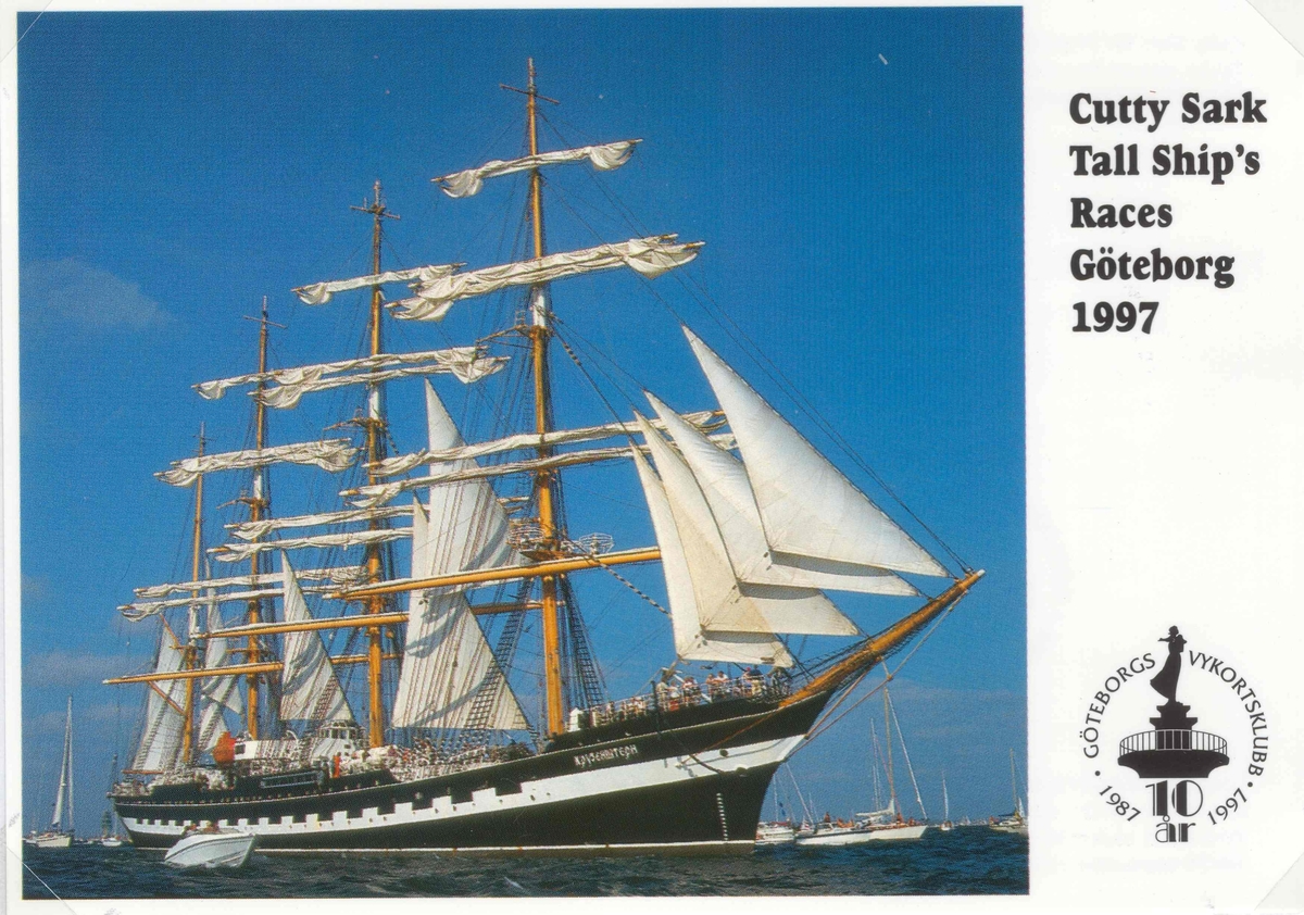 Ryska barken Kruzenshtern lämnar Göteborg. Ex Padua, en av Gustav Erikssons på Åland stora barkar som gick på vetetraden. Ryskt krigsbyte under andra världskriget.