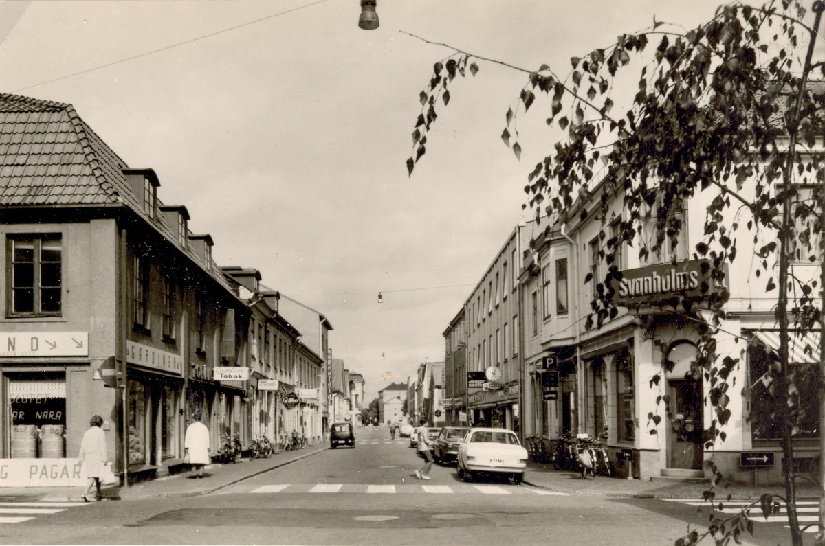 Kvarteret Kopparslagen före rivning till vänster. Kvarteret Mästaren till höger. Hörnhuset är bevarat.