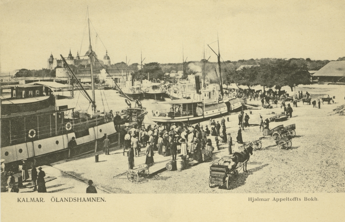 Gamla Ölandshamnen i Kalmar med slottet i fonden,