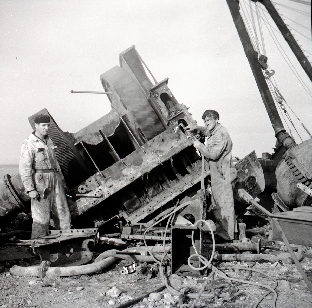Bärgningar vid Gräsgård. Delar av vraken efter de tre tyska örlogsfartyg som gick in i en svensk mnspärr och sjönk 9/7 1941 bärgas.Delar av vraken efter de tre tyska örlogsfartyg som gick in i en svensk mnspärr och sjönk 9/7 1941 bärgas.