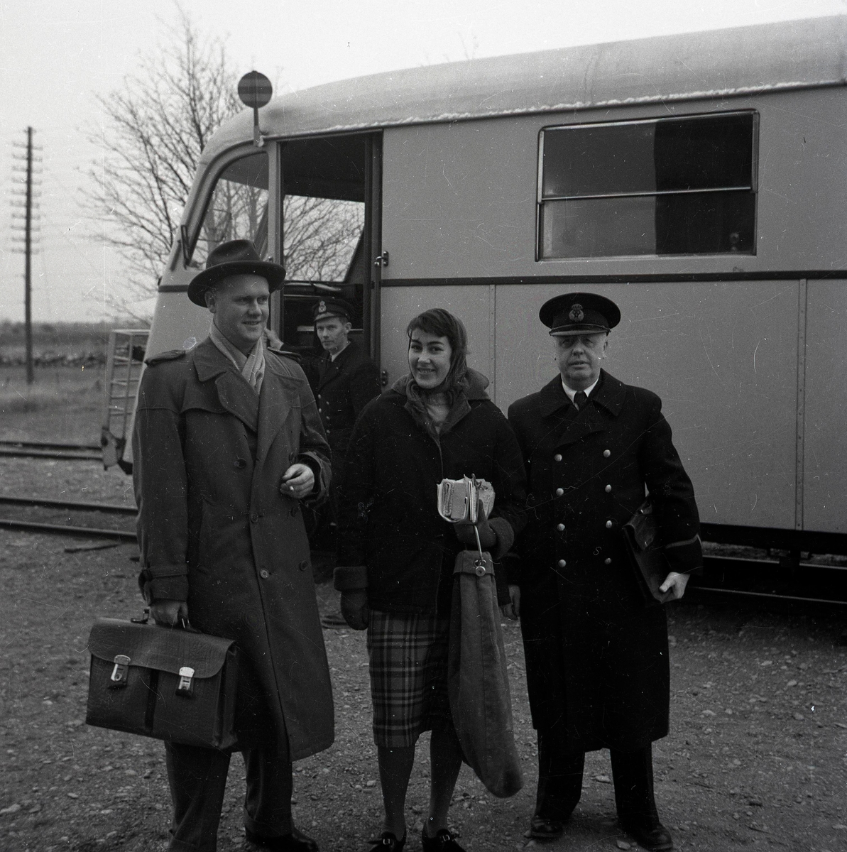 Stins Israelsson med flera framför en rälsbuss i Alböke.
