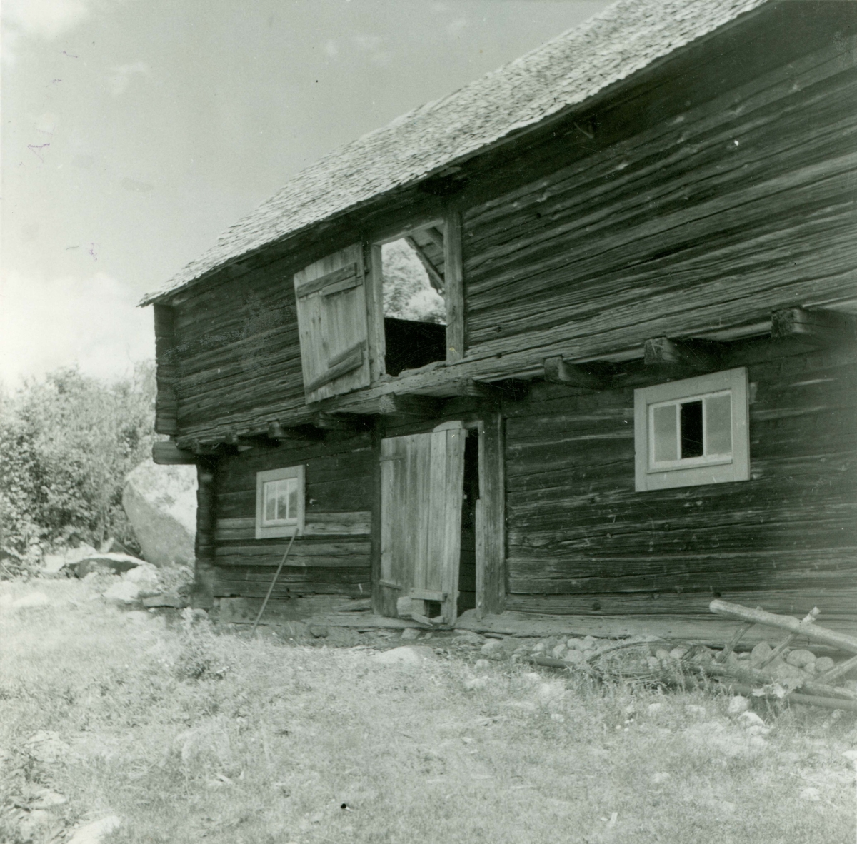 Ekonomibyggnad i korsknut. Flyttad till hembygdsgården 1953 av Karlslunda hembygdsförening.