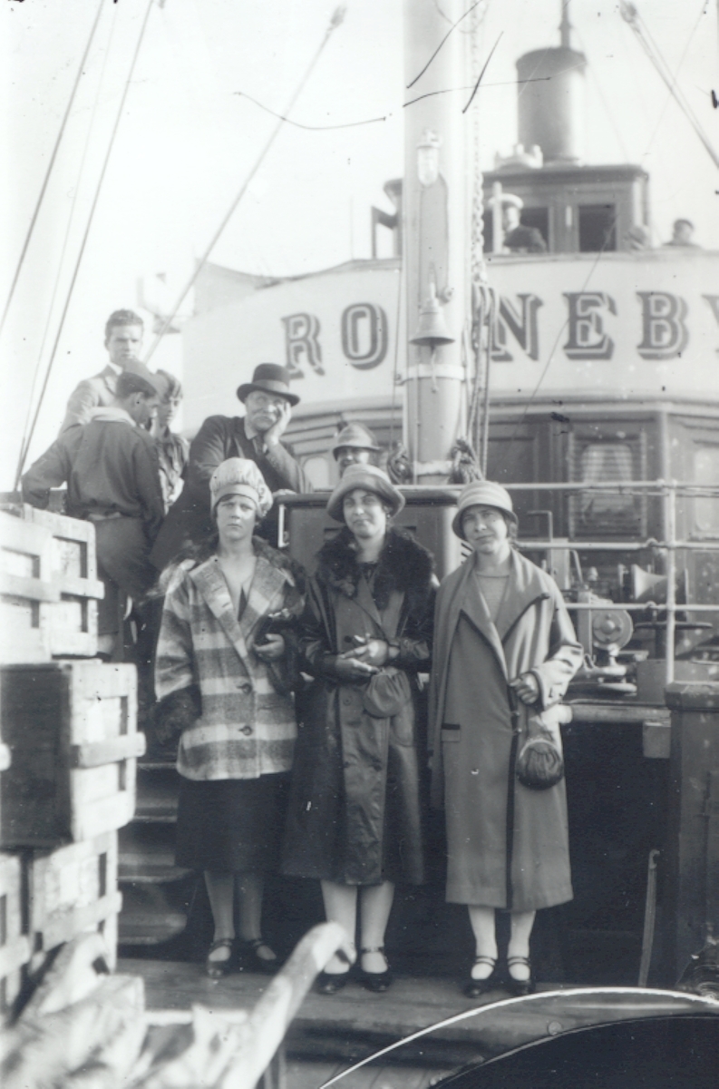 Resenärer ombord på s/s Ronneby, Karlshamn. 1930-tal