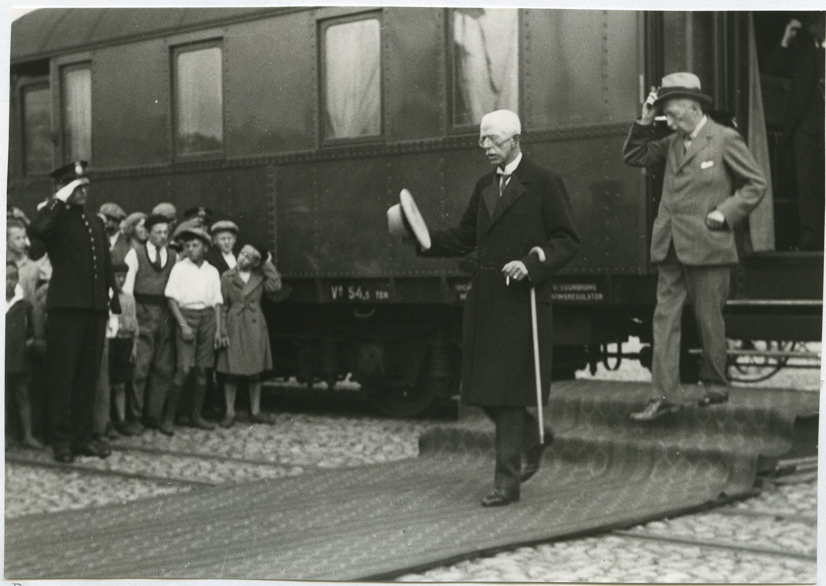 Gustav V och prins Eugen vid Ölandskajen (Ölandshamnen) i Kalmar cirka 1933-34.