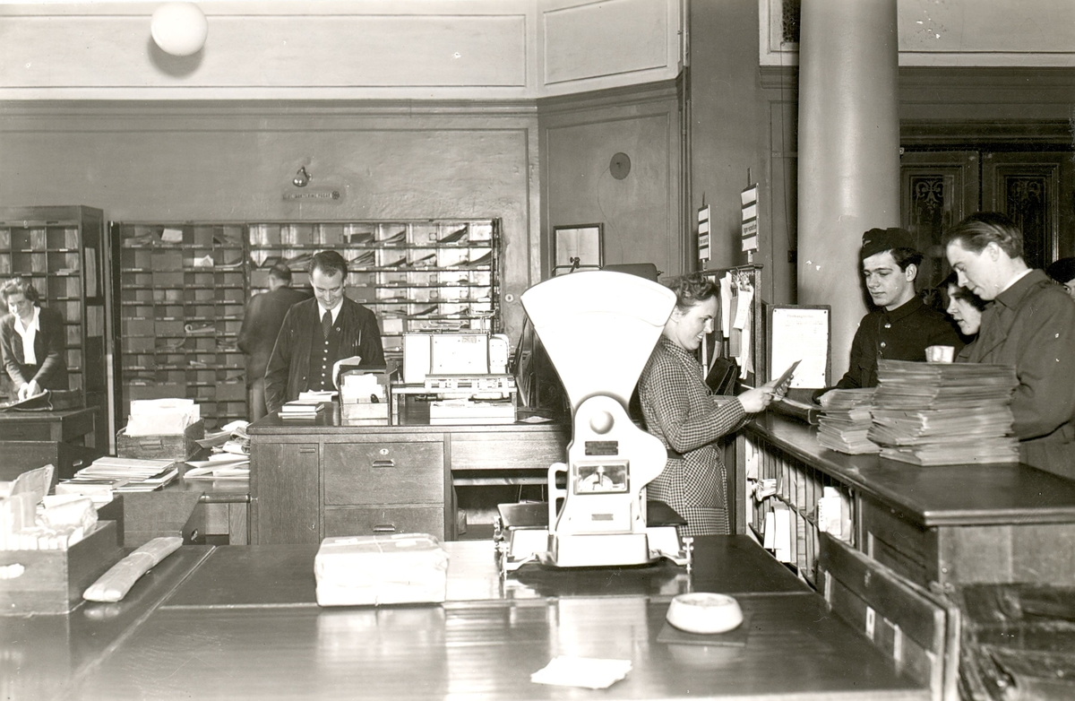 Gamla huvudpostkontoret vid Södra Långgatan i Kalmar. 1940-talet.