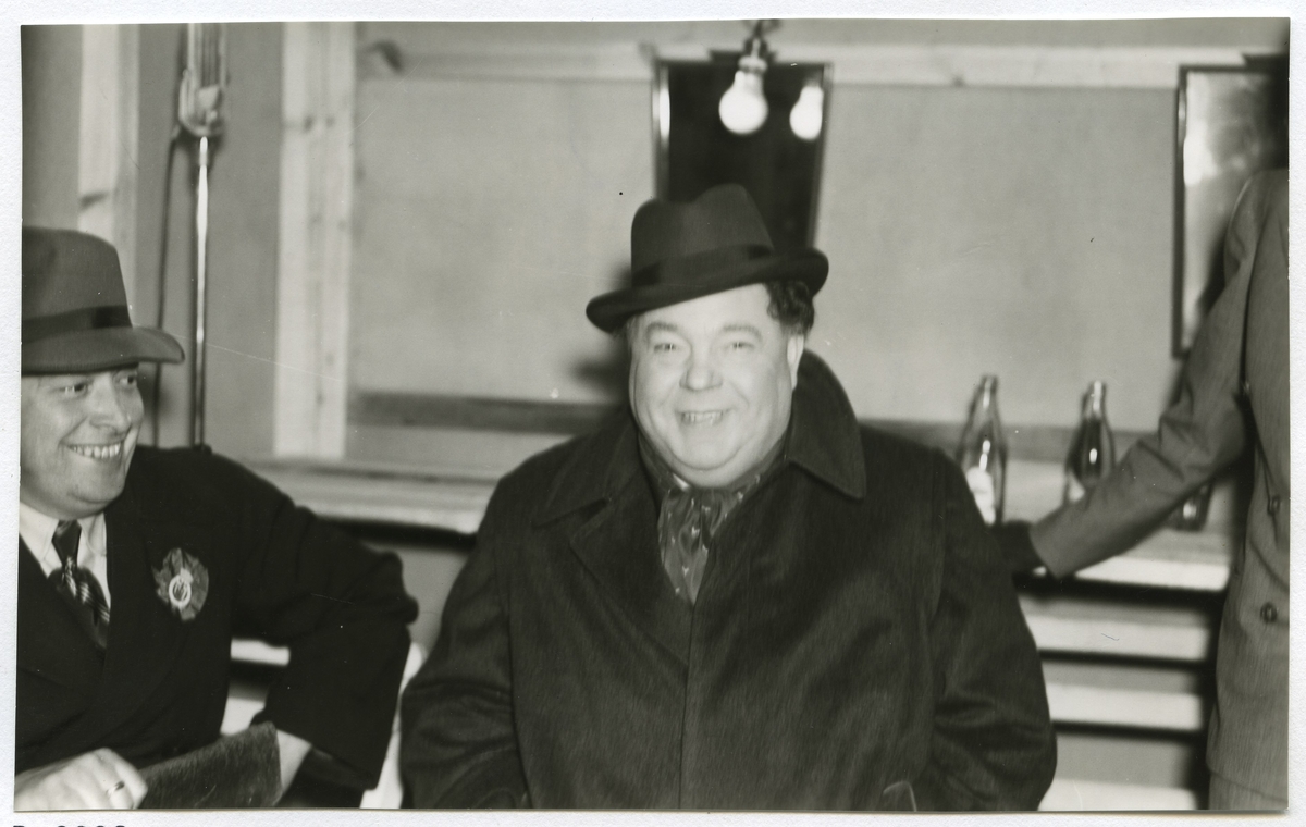Edvard Persson, filmskådespelare. Till vänster kamrer Knut Kronzel.