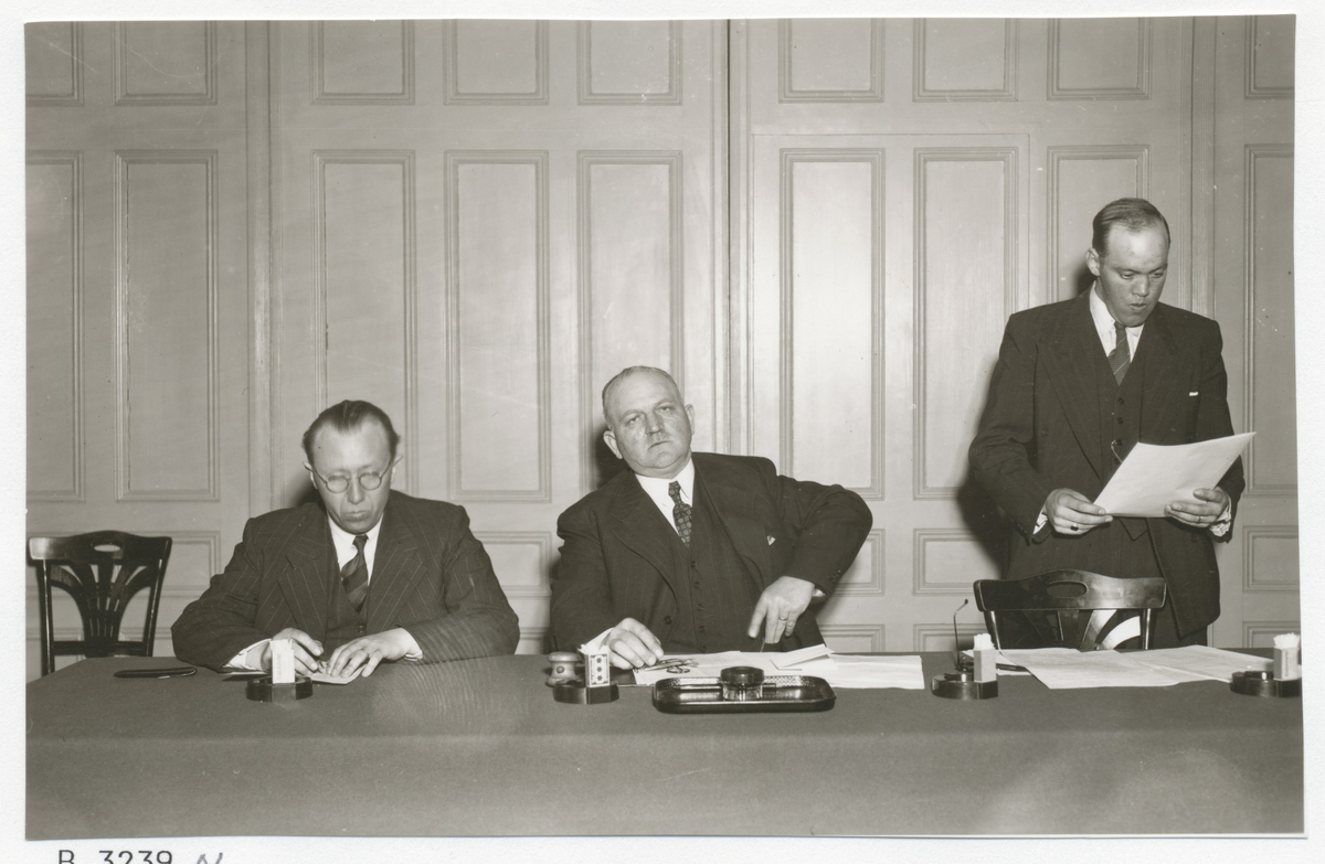 Riksdagsman Fritz Larsson, Johnsson och redaktör Algot Ivarsson. 1940-talet.