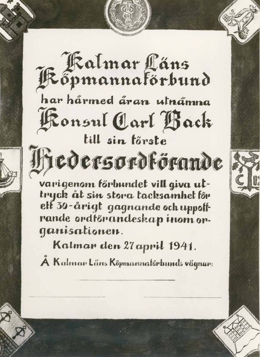 Utnämning till hedersordförande.