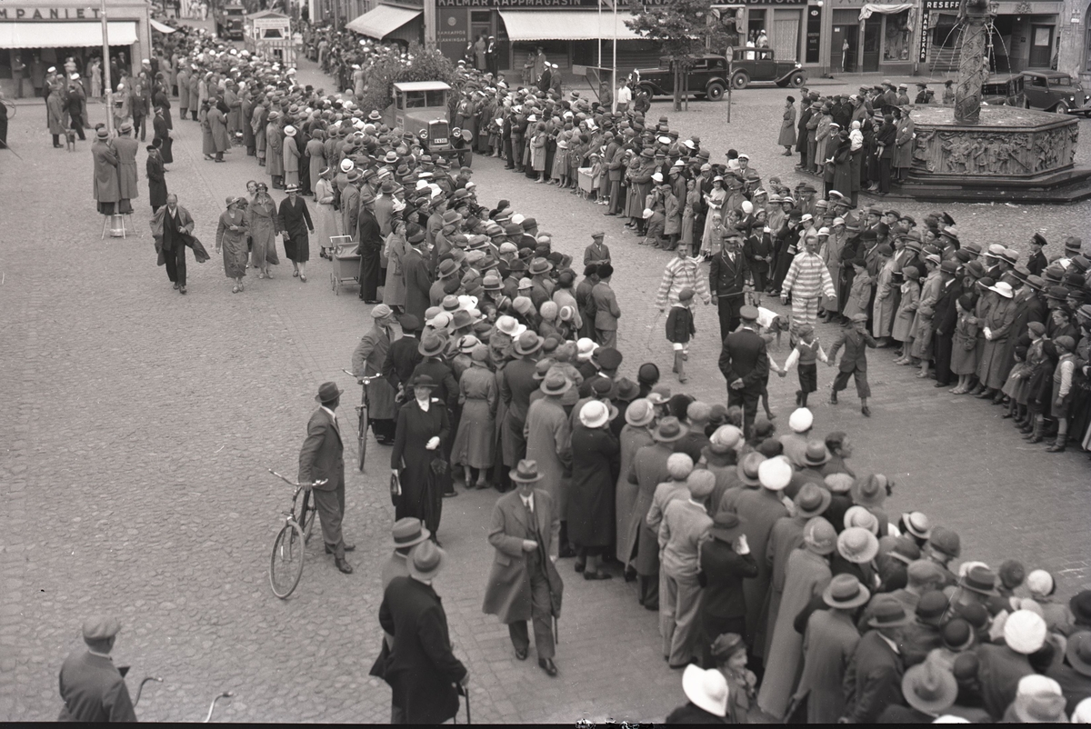 Titel: Barnens dag 14-16 Juni. Kortegen passerar Larmtorget.