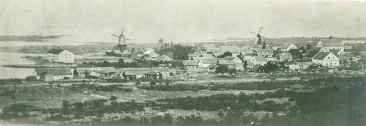Bild tagen från slottsruinen före 1872 eftersom kyrkan ännu inte börjat byggas.