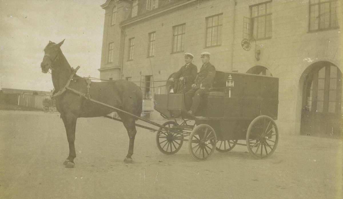 Kalmars första ambulansvagn, som senare överfördes till polisen, där den användes för att transportera fyllerister till arresten.