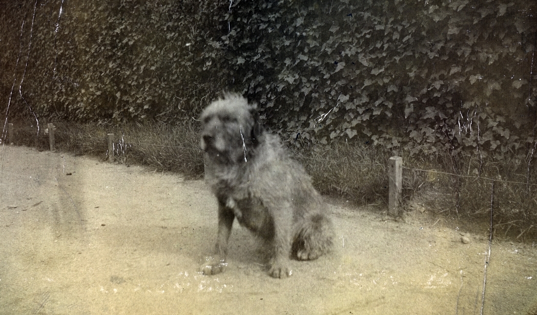 Hunden Prisse vid Kalmar brandkår. Hundar användes för att bana väg för de hästdragna brandfordonen.