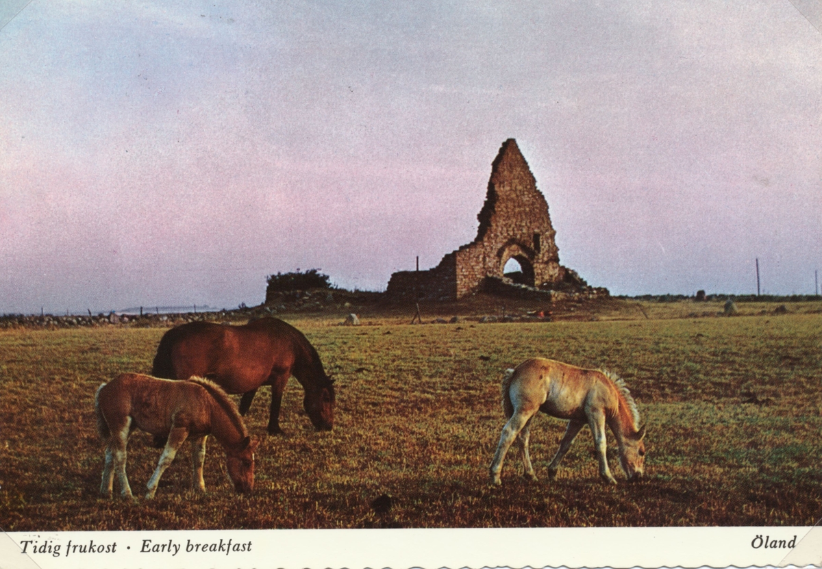 Betande hästar på östra landborgen, invid Sankta Britas kapellruin.