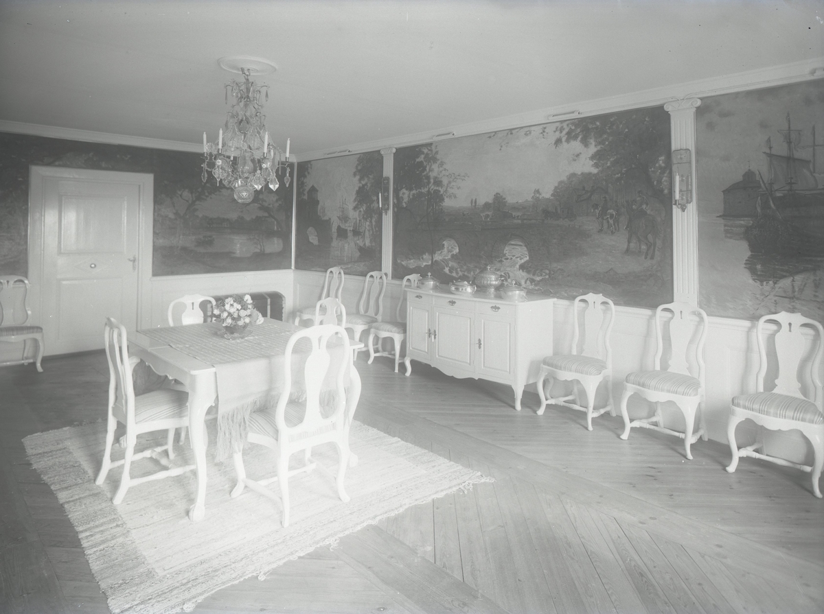 Matsalen på Näset på Värnanäs. Väggmålningar av Ragnar Swahn.