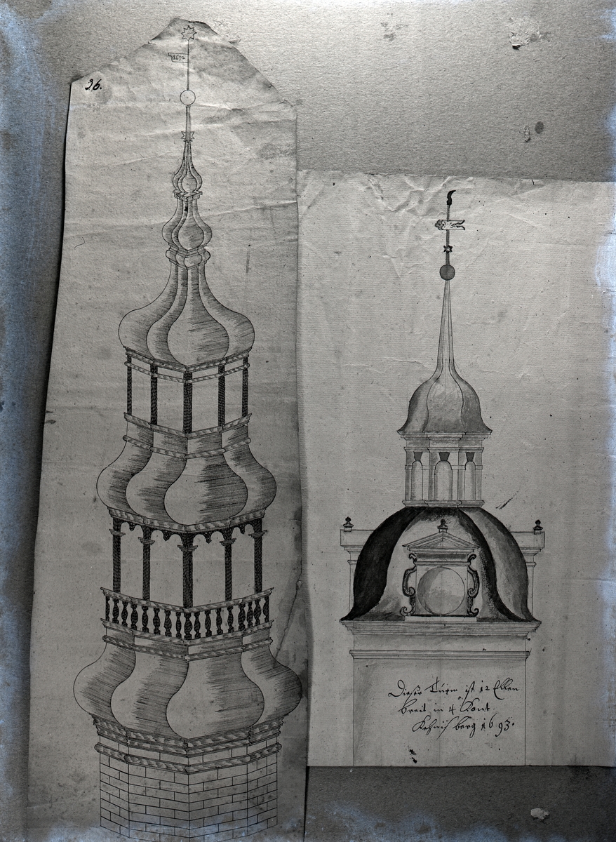 Ritning till tornspira på Kalmar slott.