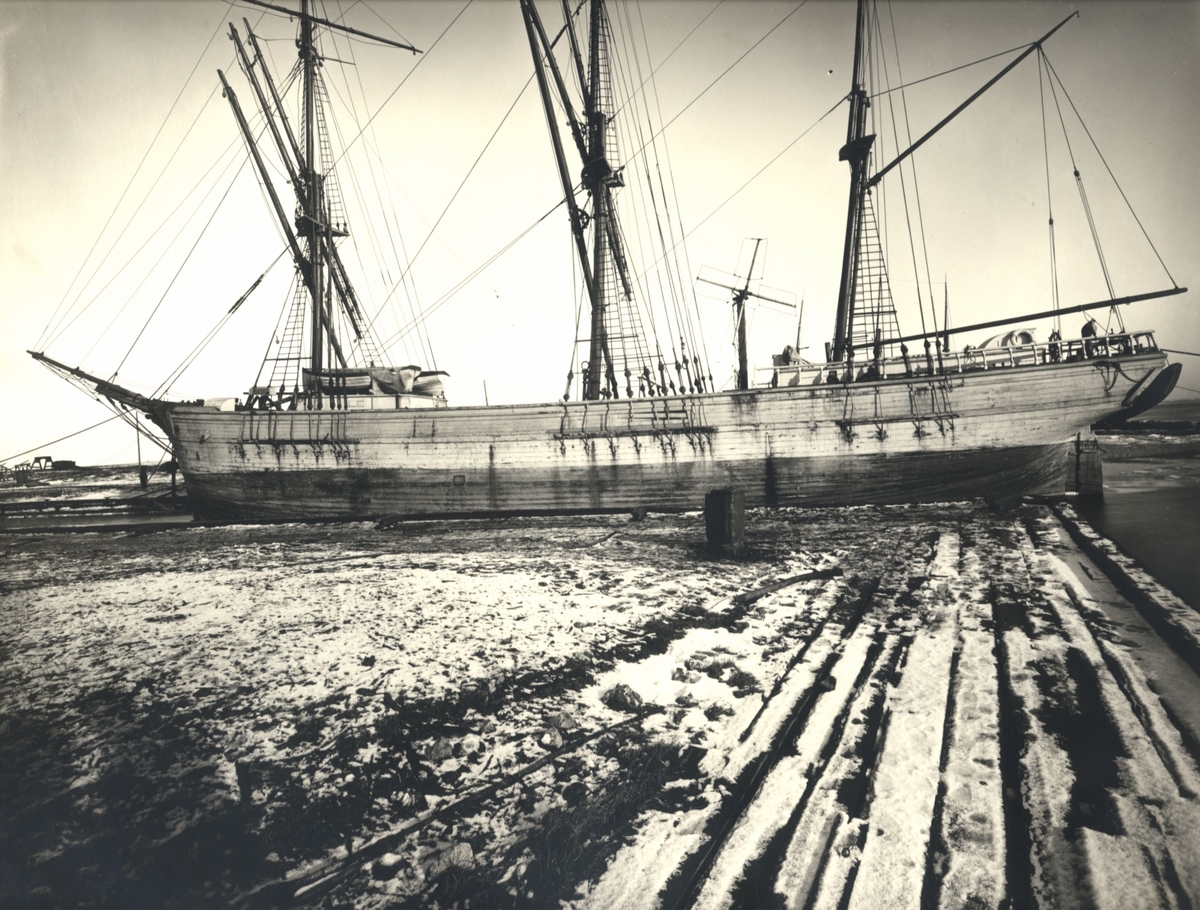 Tremastad bark på varvet i Kalmar.
