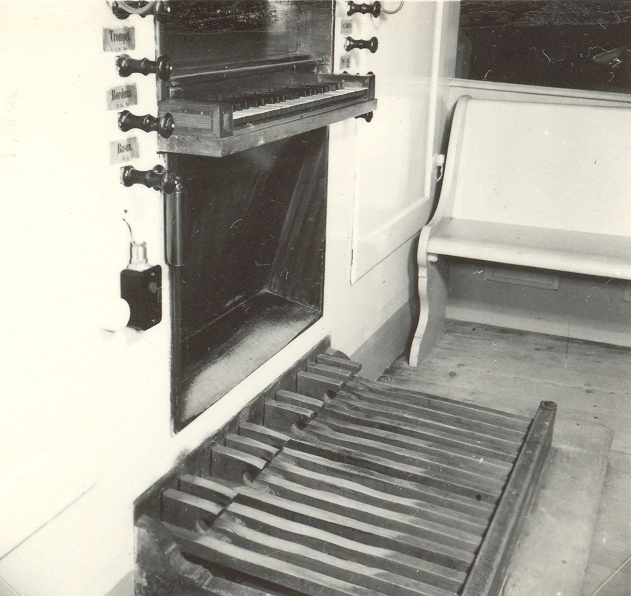 Pedalklaviaturen till en orgel i Loftahammar kyrka.