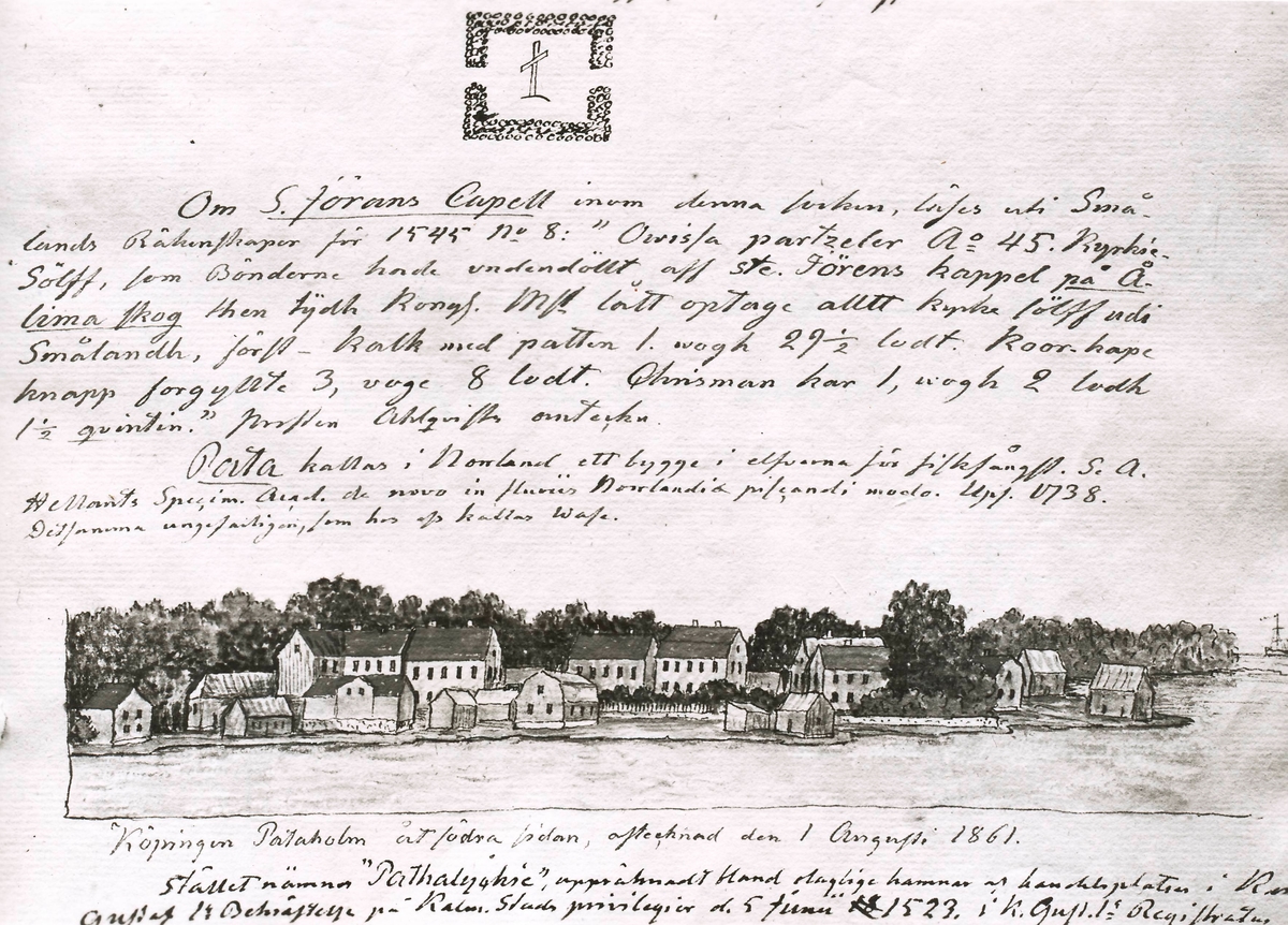 Pataholms köping åt södra sidan, tecknad den 1 augusti 1861 av N.I. Löfgren.