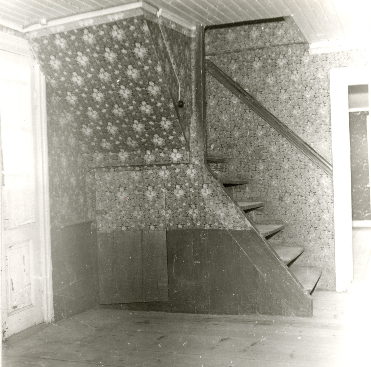 Stommen, huvudbyggnaden. Nedre hall. Trappan till övervåningen.