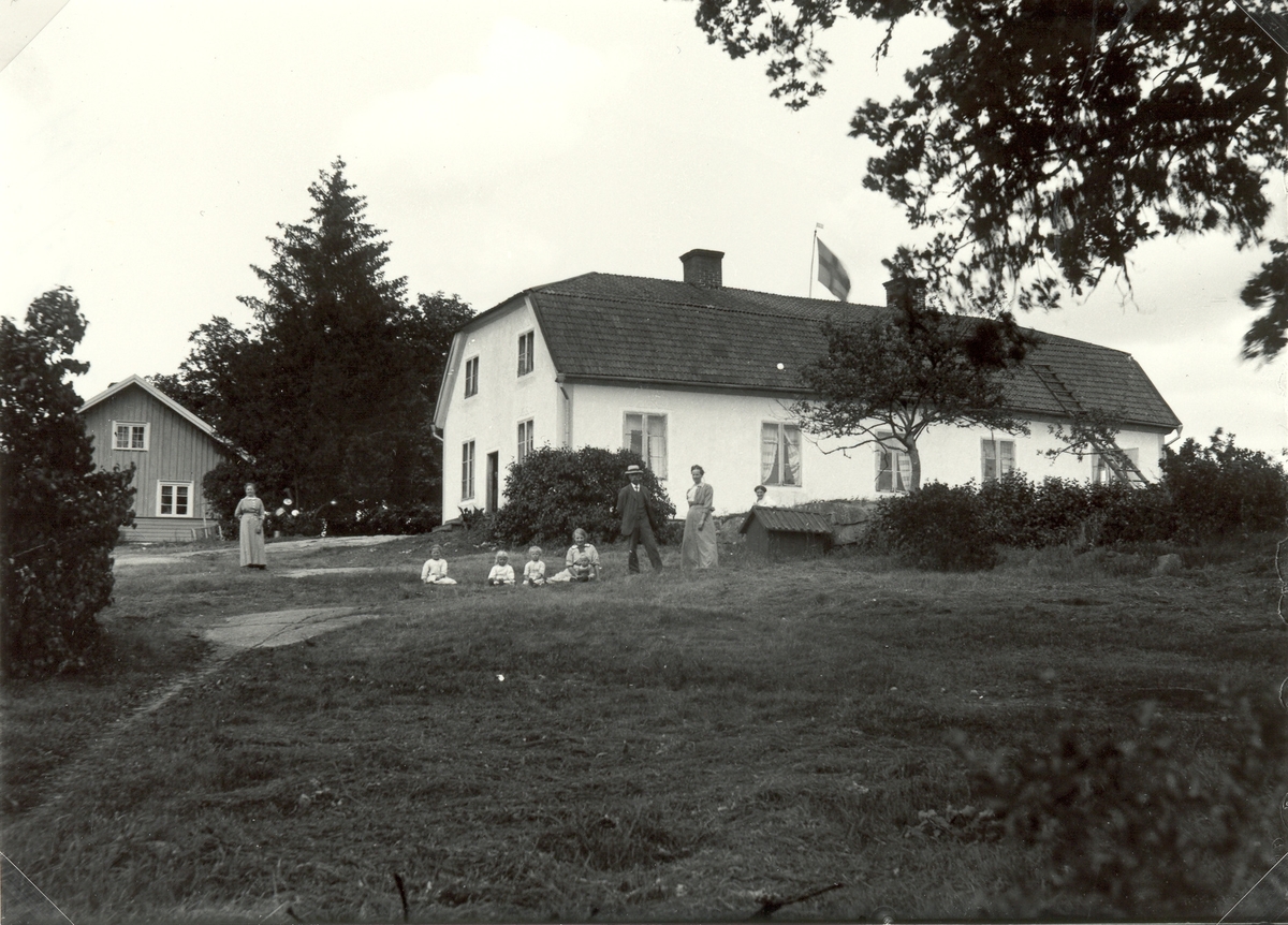 Gård med Smedserum 1914. Huset är uppfört med putsad fasad och Valmat mansardtak.