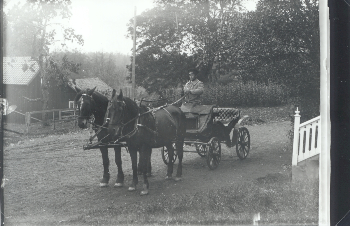 Herman Nilsson med hästar utanför prästgården i Hjorted 1922.