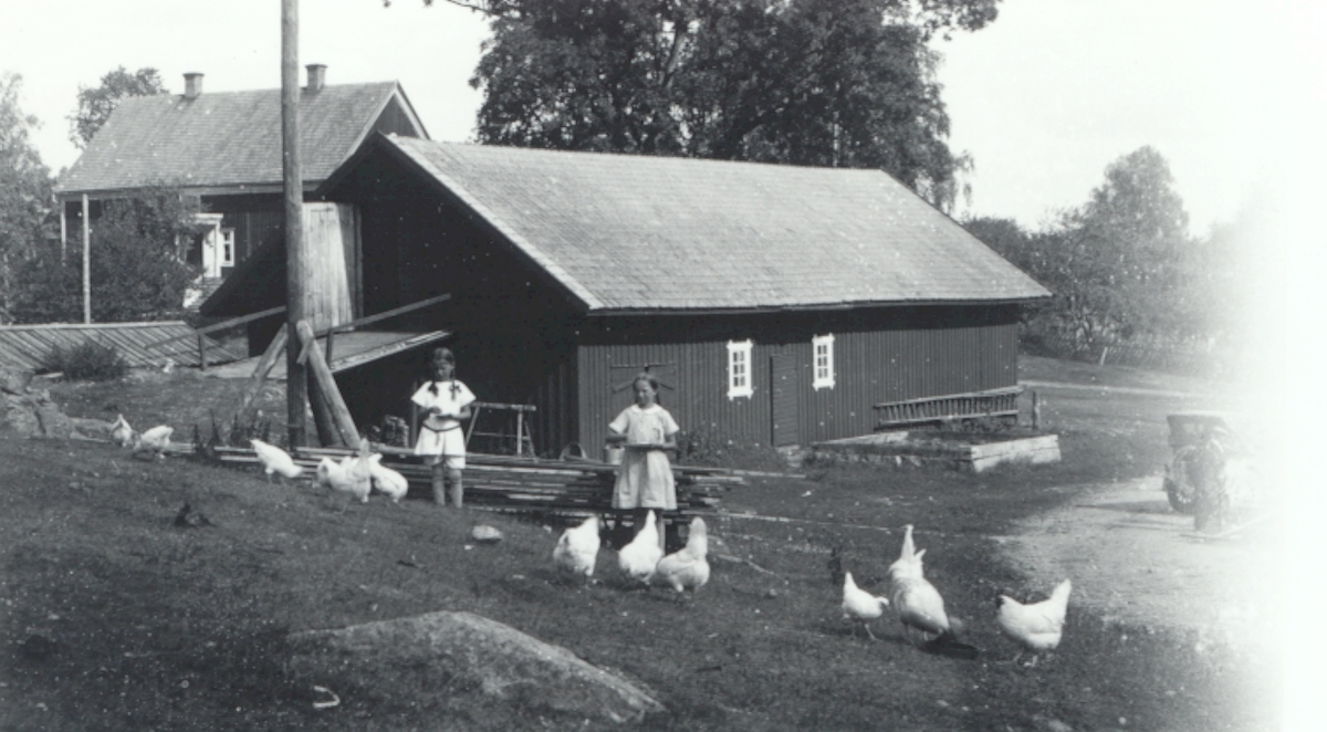 Hönsen matas vid Prästgården i Nynäs.