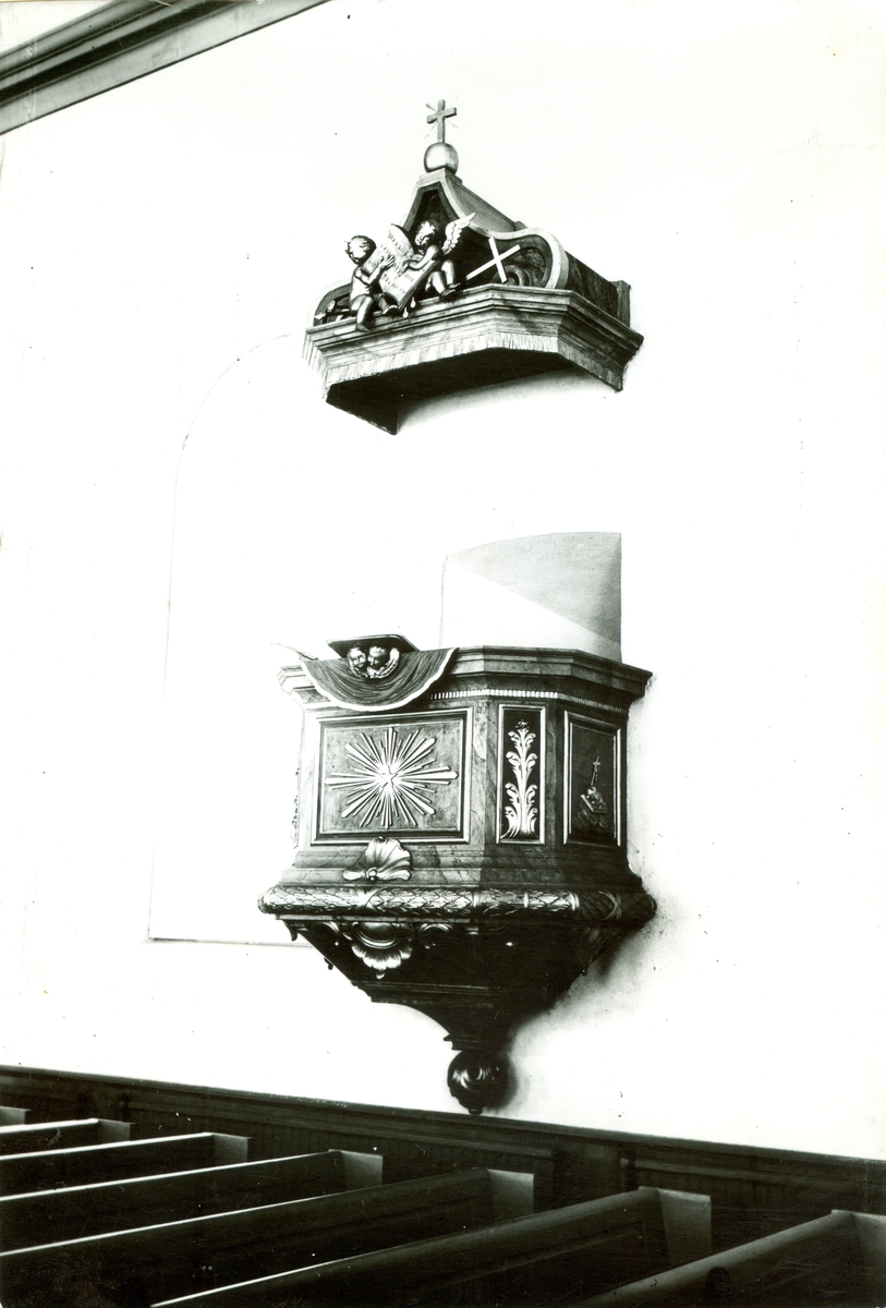 Predikstolen i Kristdala kyrka efter konservering 1935.