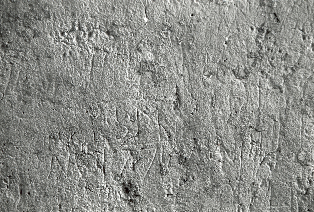 Taket text ovanför norra väggen västligaste fönstersmyg.