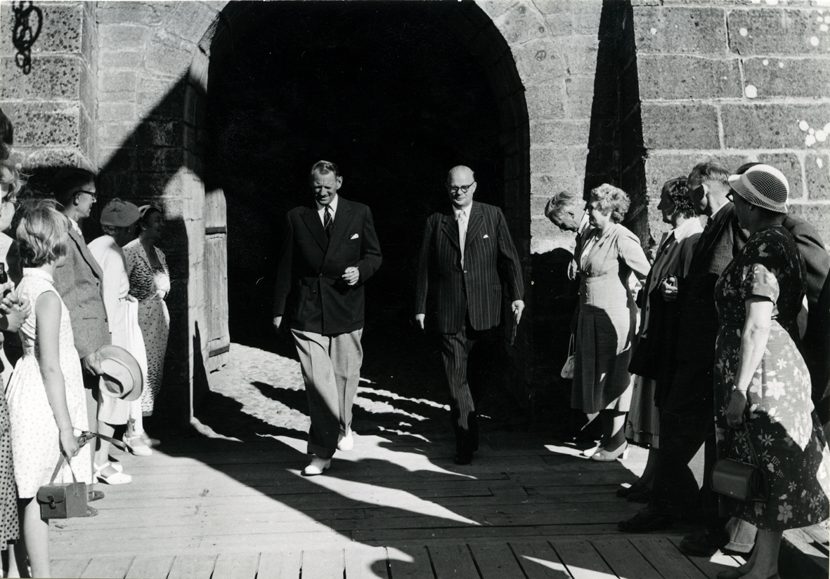 Konung Frederik med landshövding Wagnsson efter besöket på Kalmar slott.