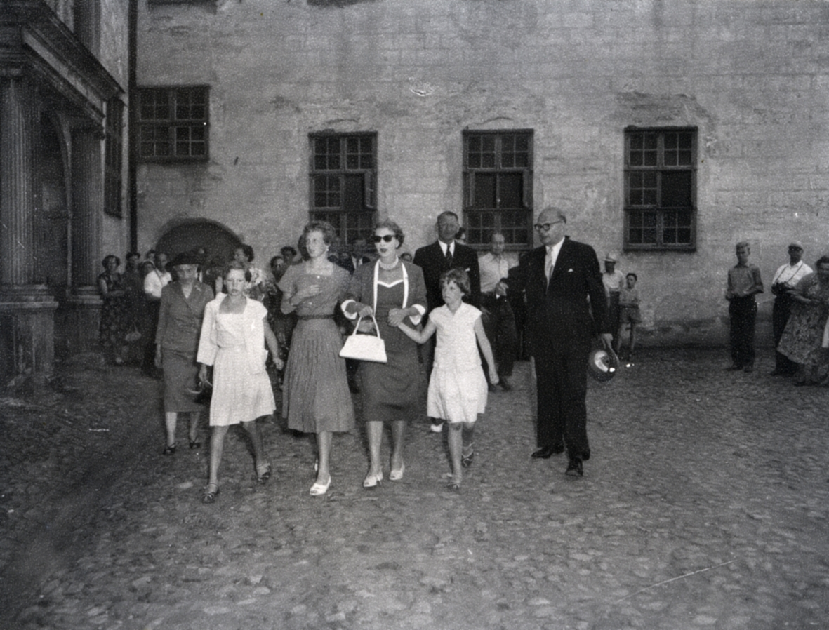 Kungafamiljen med landshövding Wagnsson på inre borggården på Kalmar Slott.