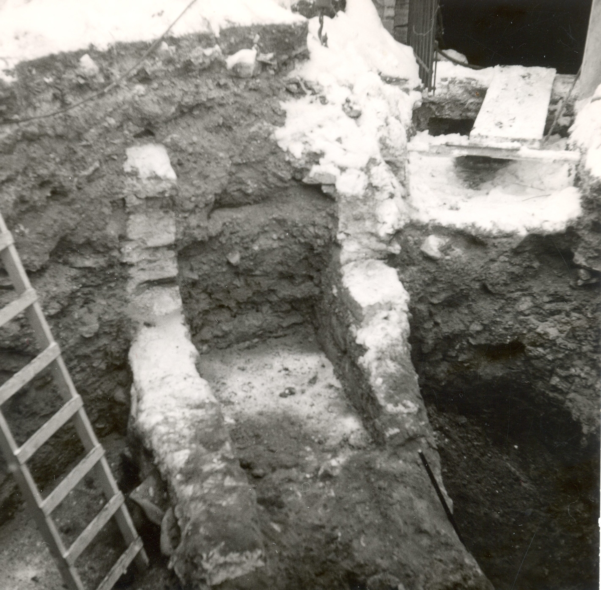 Kalmar Slott. Yttre borggården NV vid grävning för VAO. December - 68.