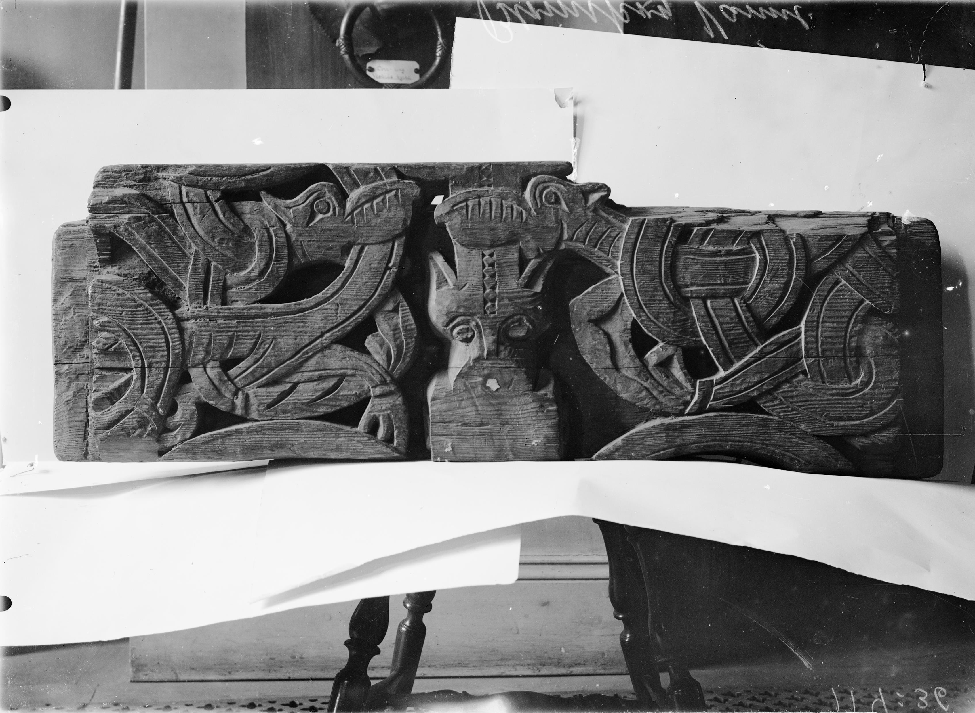 Överstycke till dörromfattning från den gamla stavkyrkan.