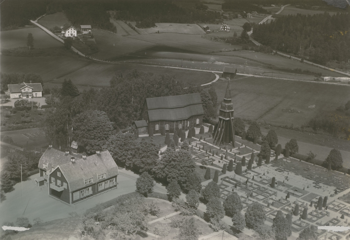 Flygfoto över Frödinge kyrka 1935.