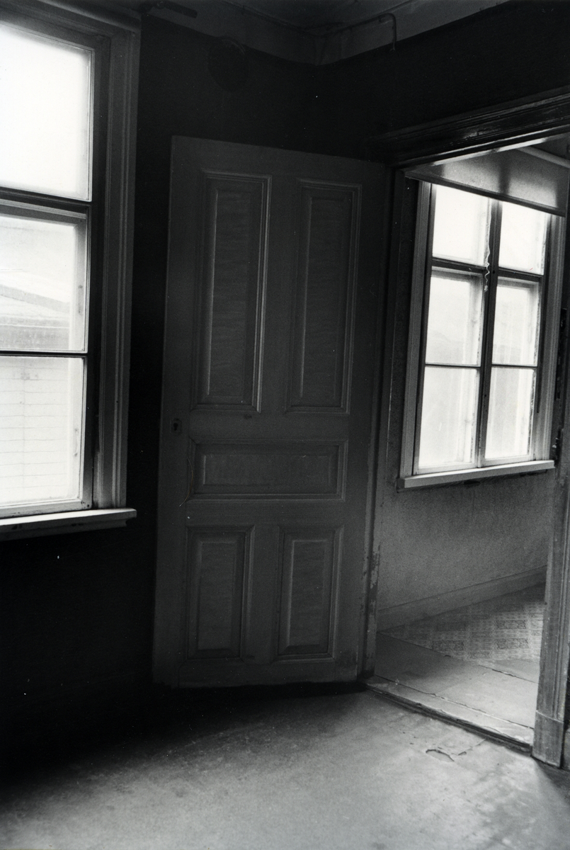 Dörr mellan rummen i tillbygget i en fastighet på Fiskaregatan.