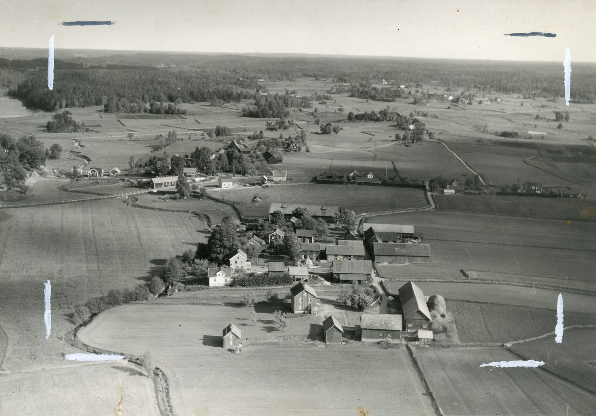 Flygbild över Blackstad sn. Rörsberg, gårdar åkrar och skog.