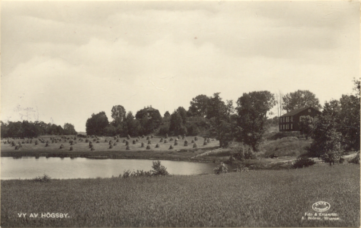 Vykort, till höger ligger gästgivaregården och i mitten uppe på backen skymtar lantmannaskolan, före detta tingshus.